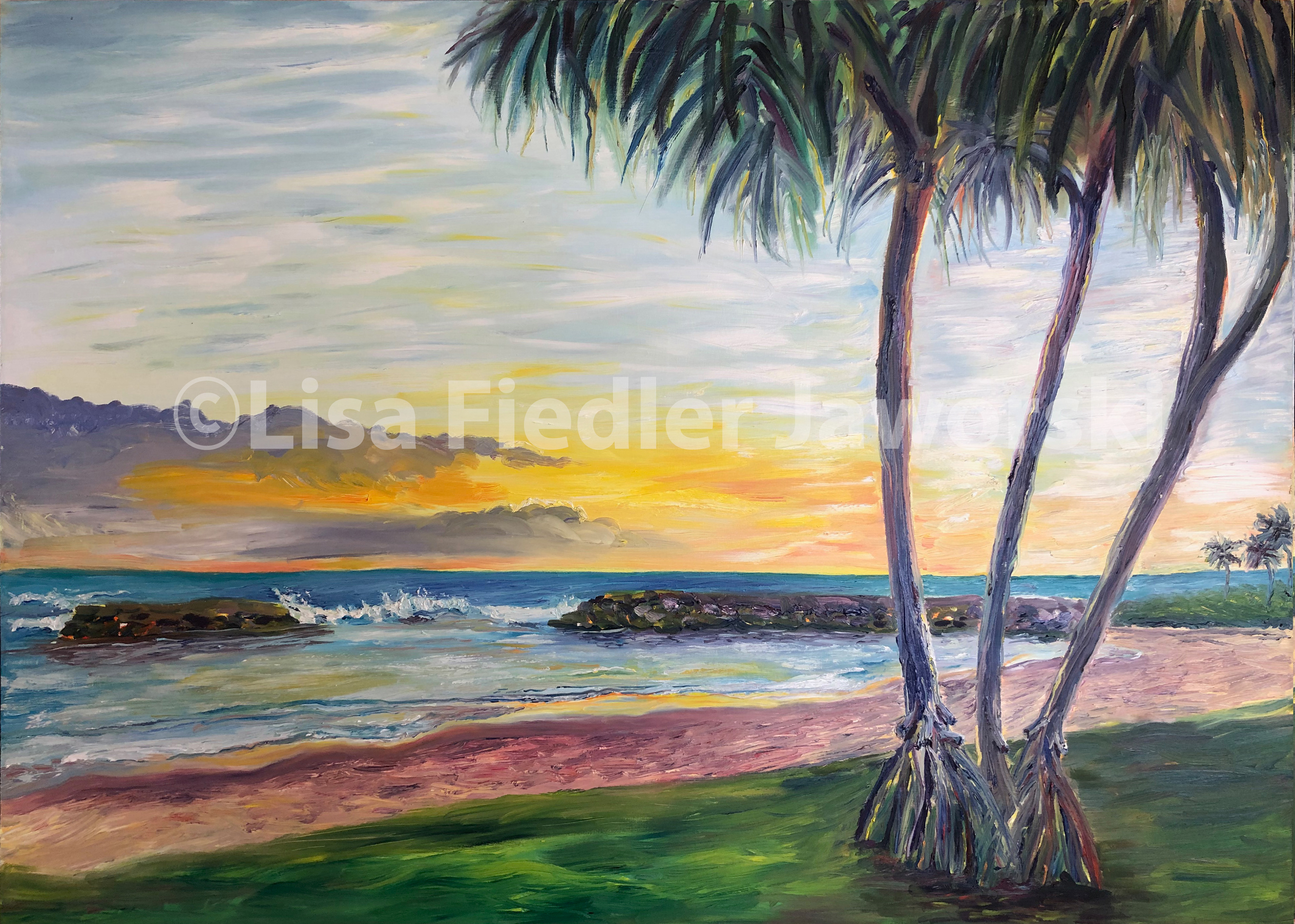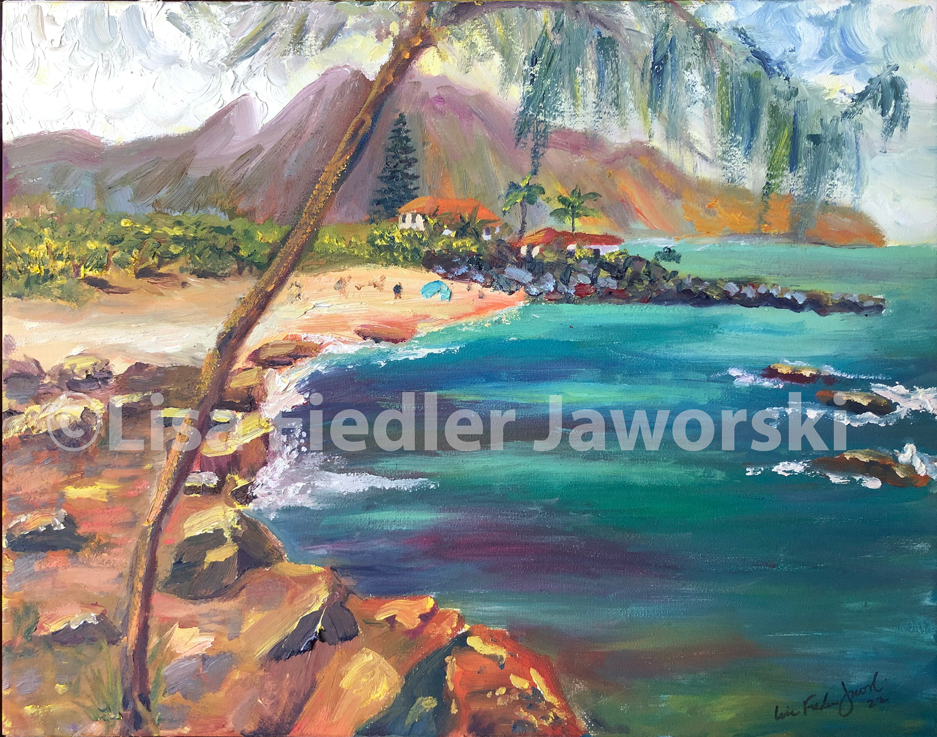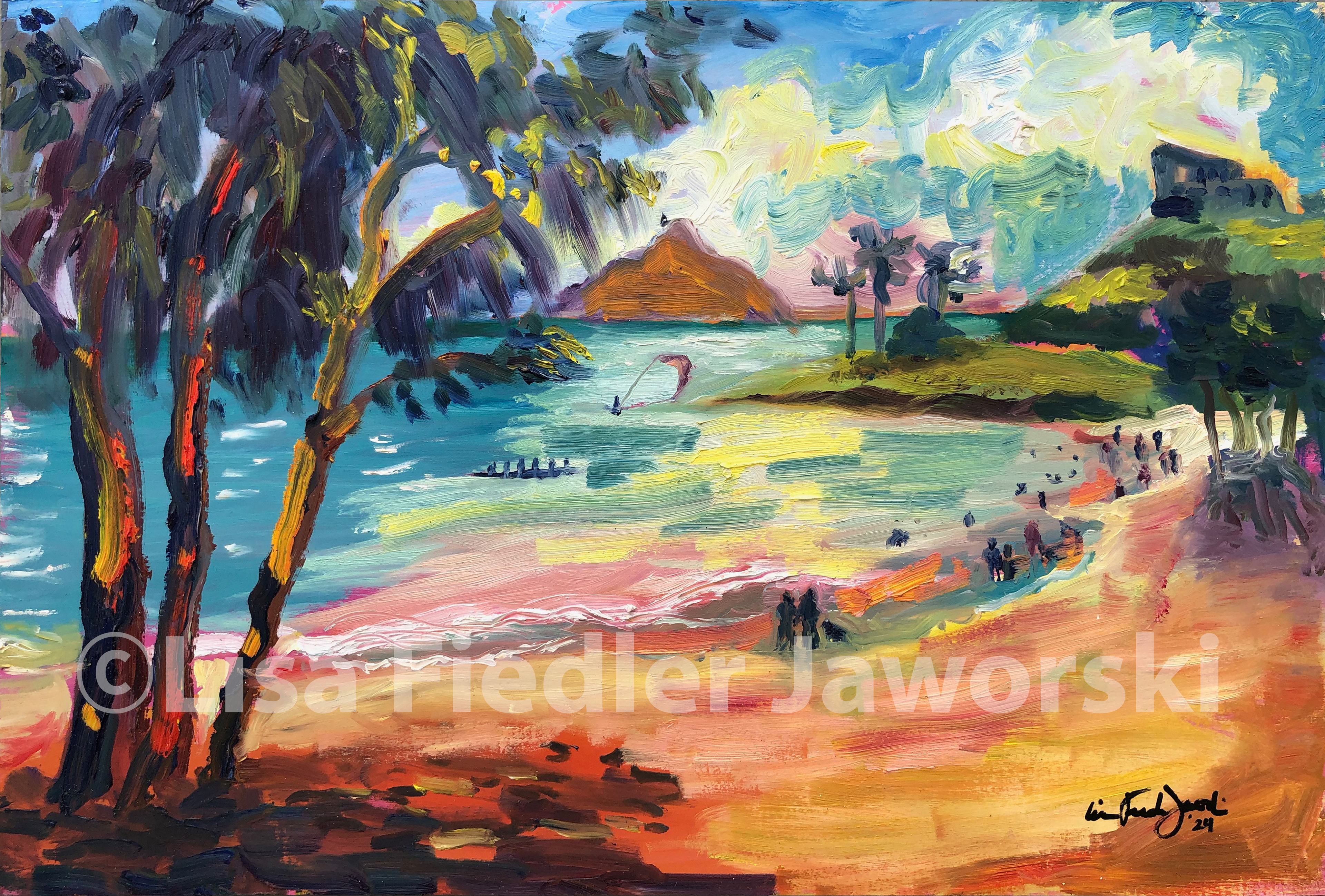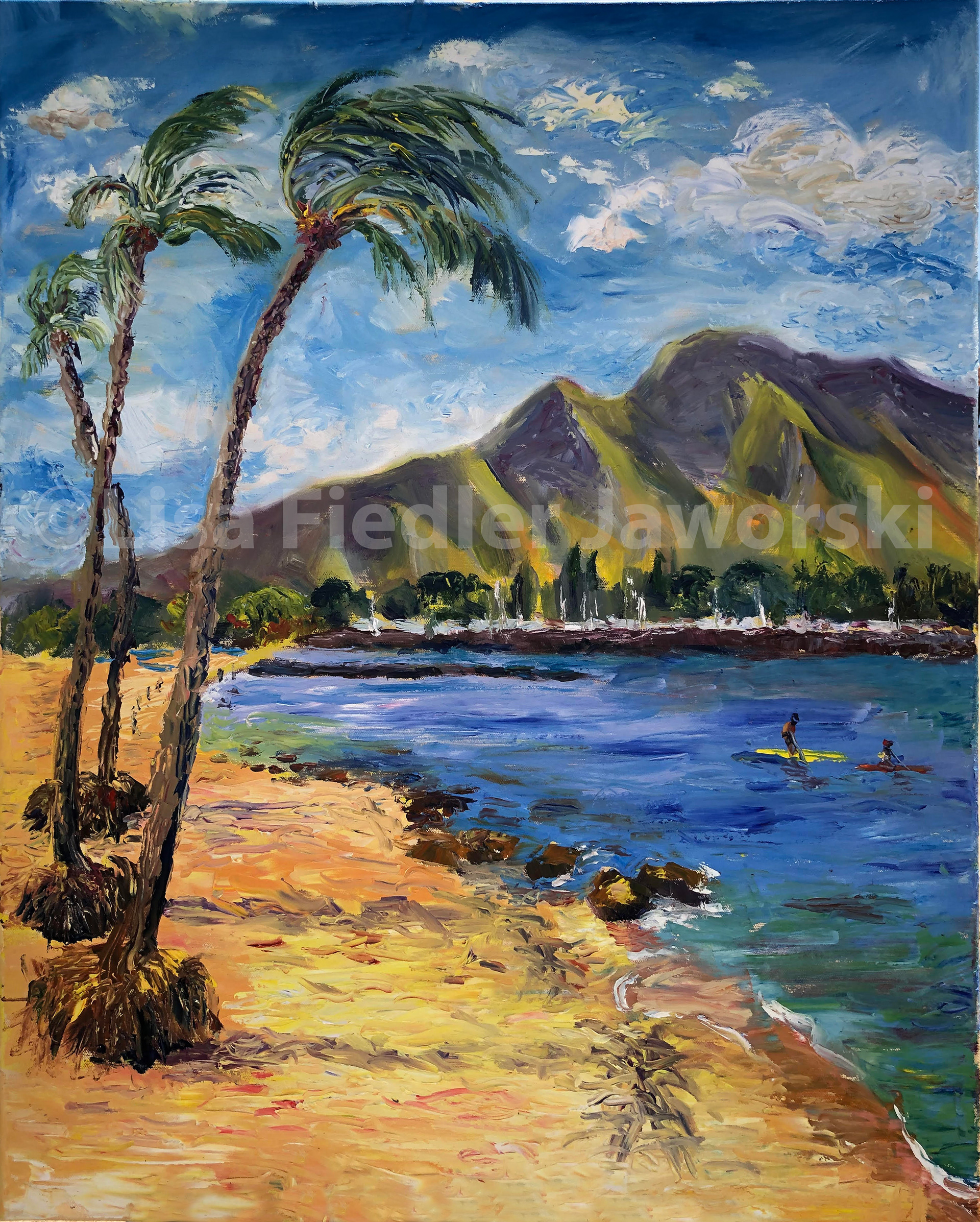 Haleiwa Beach and Boat Harbor 24 x 30 oil on canvas