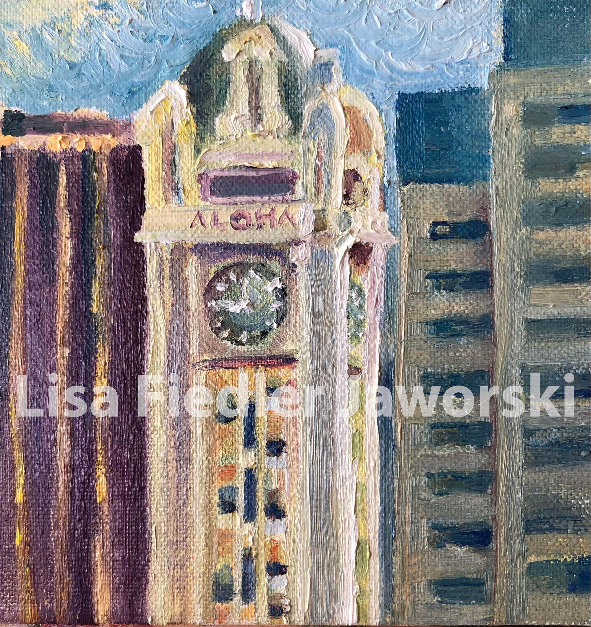 6 x 6 Ionlani Palace Coronation Tower, oil on canvas