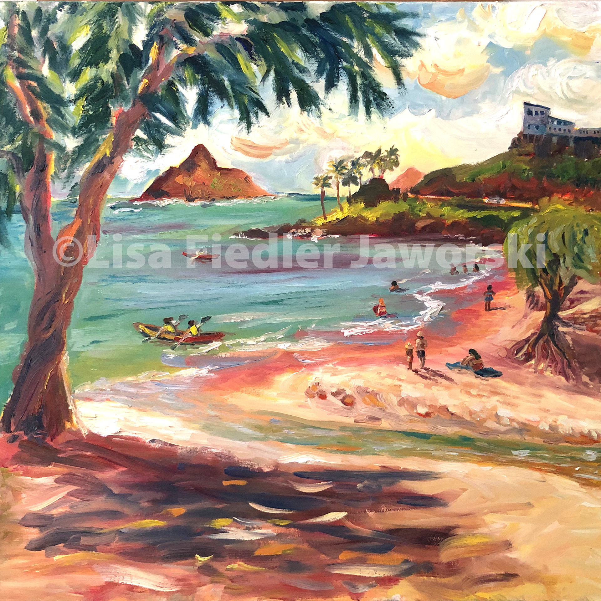 Available by commission only, 30 x 30, Kailua Beach Day, oil