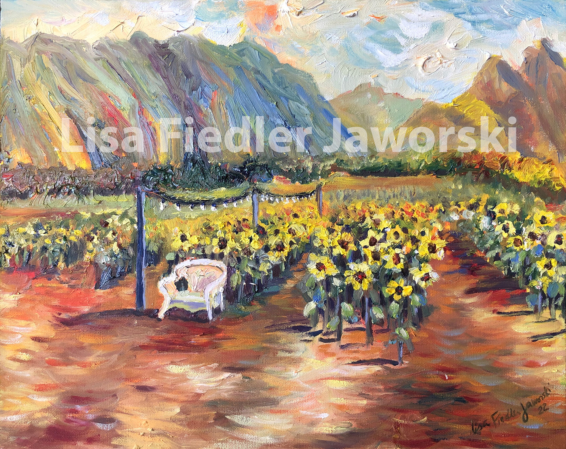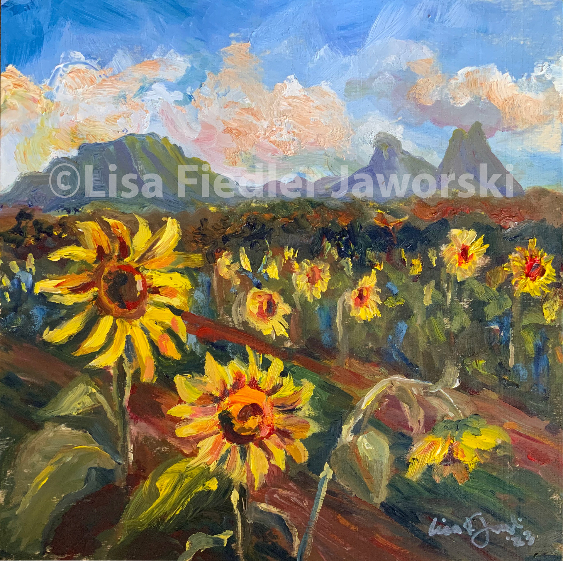 SOLD! Available for commission, 20 x 16 Waimanalo Sunflower Field, oil