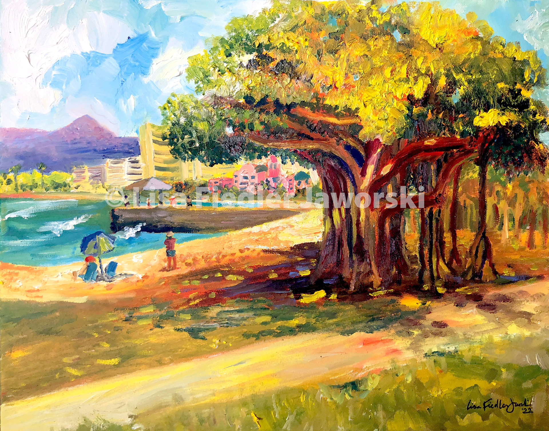 16 x 16 Waikiki Banyan Tree May 23, oil